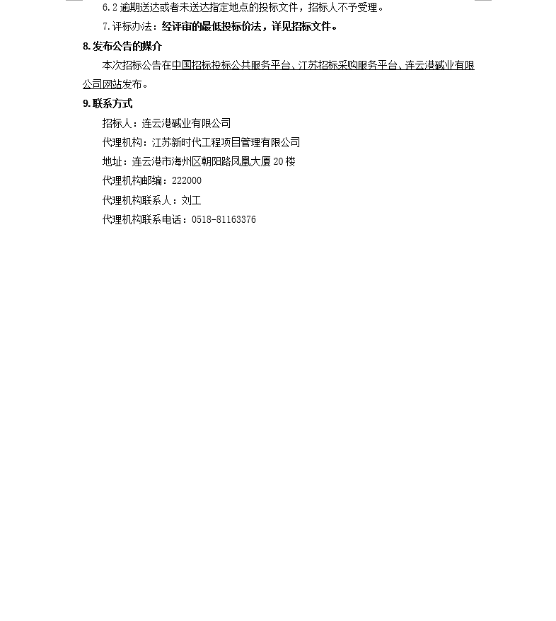連云港堿業(yè)有限公司煤氣化渣固廢處置二次招標(biāo)公告