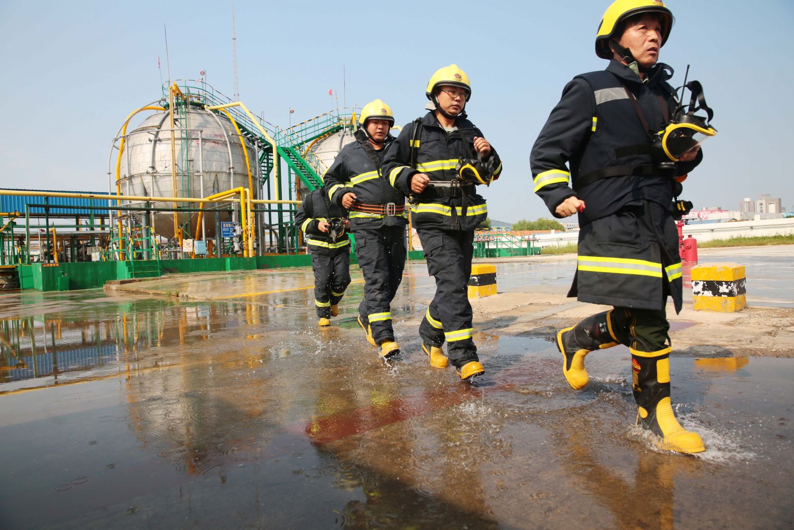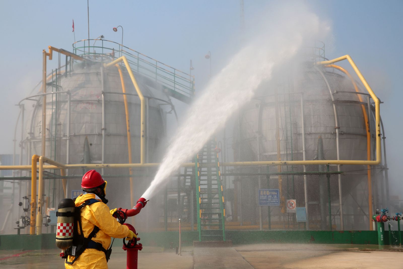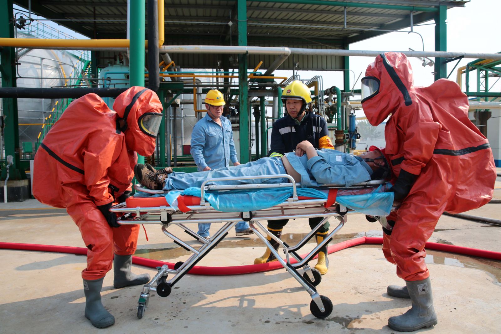 為檢驗公司應(yīng)急救援時各環(huán)節(jié)的協(xié)調(diào)能力和應(yīng)急救援預(yù)案的可操作性,提高應(yīng)急人員在緊急情況下妥善處置突發(fā)事件的實戰(zhàn)能力,9月5日,公司以“液氨庫B球罐底部發(fā)生泄漏,現(xiàn)場當(dāng)班工人中毒”為假想事故,在液氨庫舉行秋季危險化學(xué)品生產(chǎn)安全事故應(yīng)急救援演練。