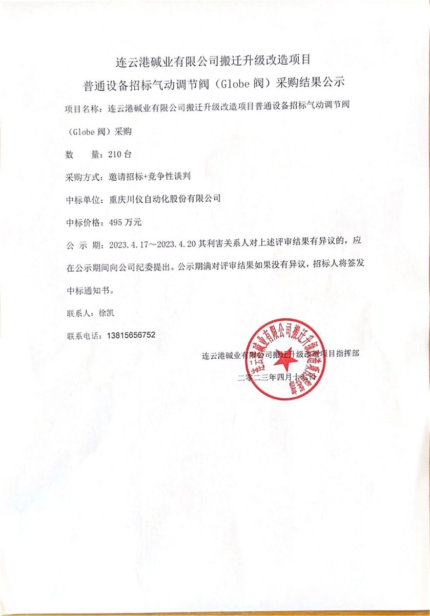 氣動調(diào)節(jié)閥(Globe閥)采購結(jié)果公示