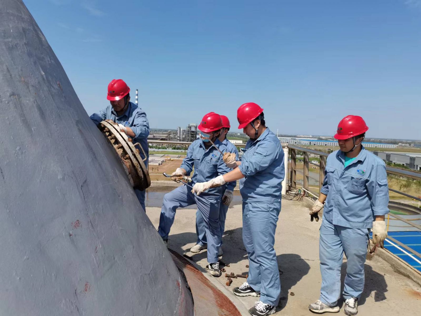 為了保證停車和開車工作的順利進行,停車期間,實習職工主動協(xié)助當班人員打開16個人孔,并在實際操作中重點學習設備檢修、清洗的具體操作流程以及消缺重點難點等。檢修結(jié)束后又全流程參與16個人孔的封堵流程。“平時員工實習是看不到設備內(nèi)部結(jié)構(gòu)和檢修全流程的。這次停車檢修消缺,很多設備都可以打開,對大家來說是一次很好的學習機會。通過這次檢修,大家積累了寶貴的檢修經(jīng)驗。”檢修結(jié)束后,大家如是說。