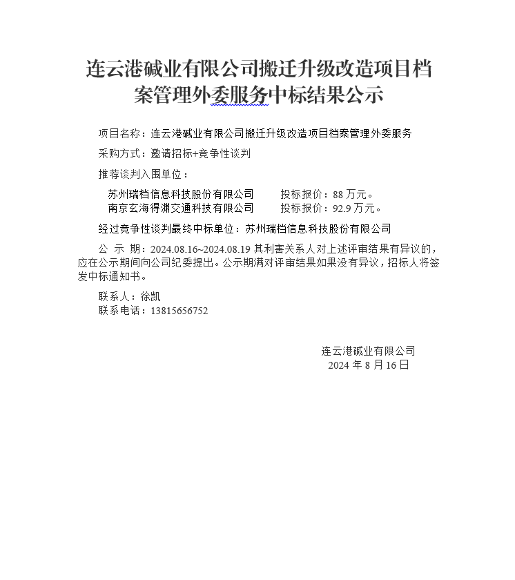 搬遷升級改造項目檔案管理外委服務中標結果公示
